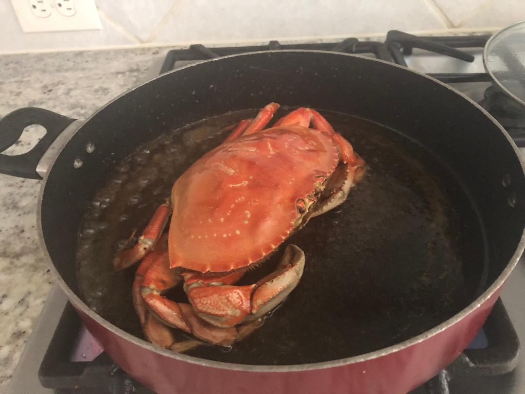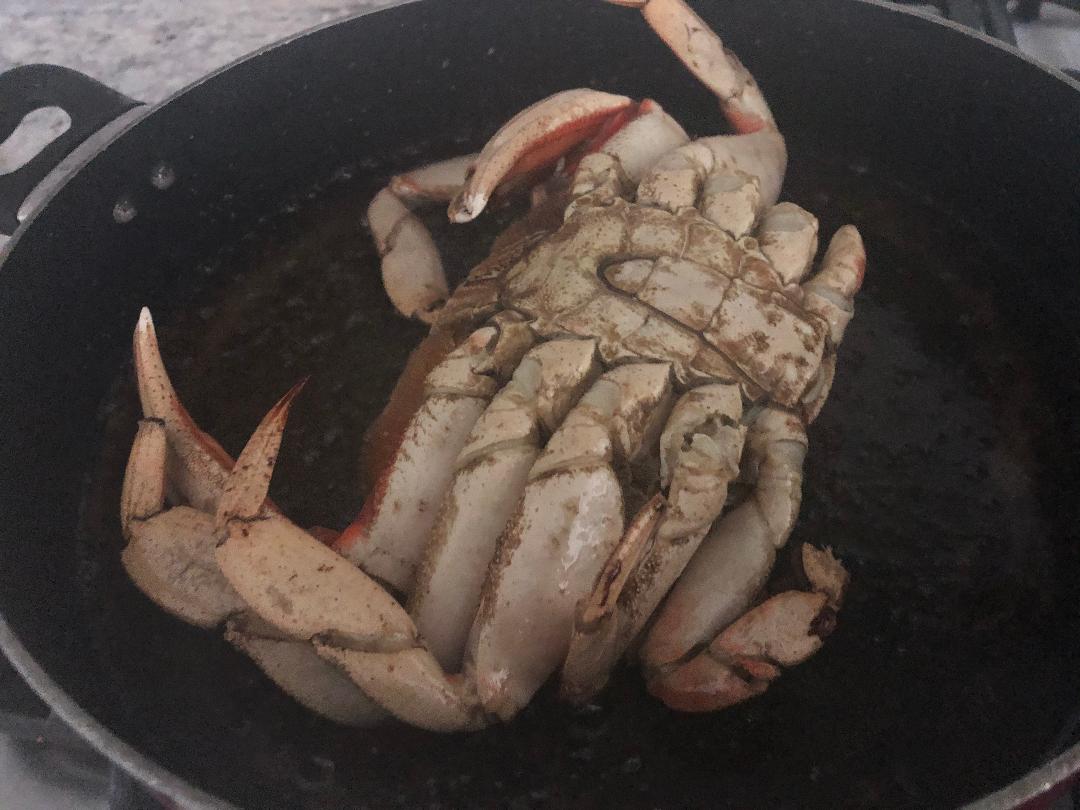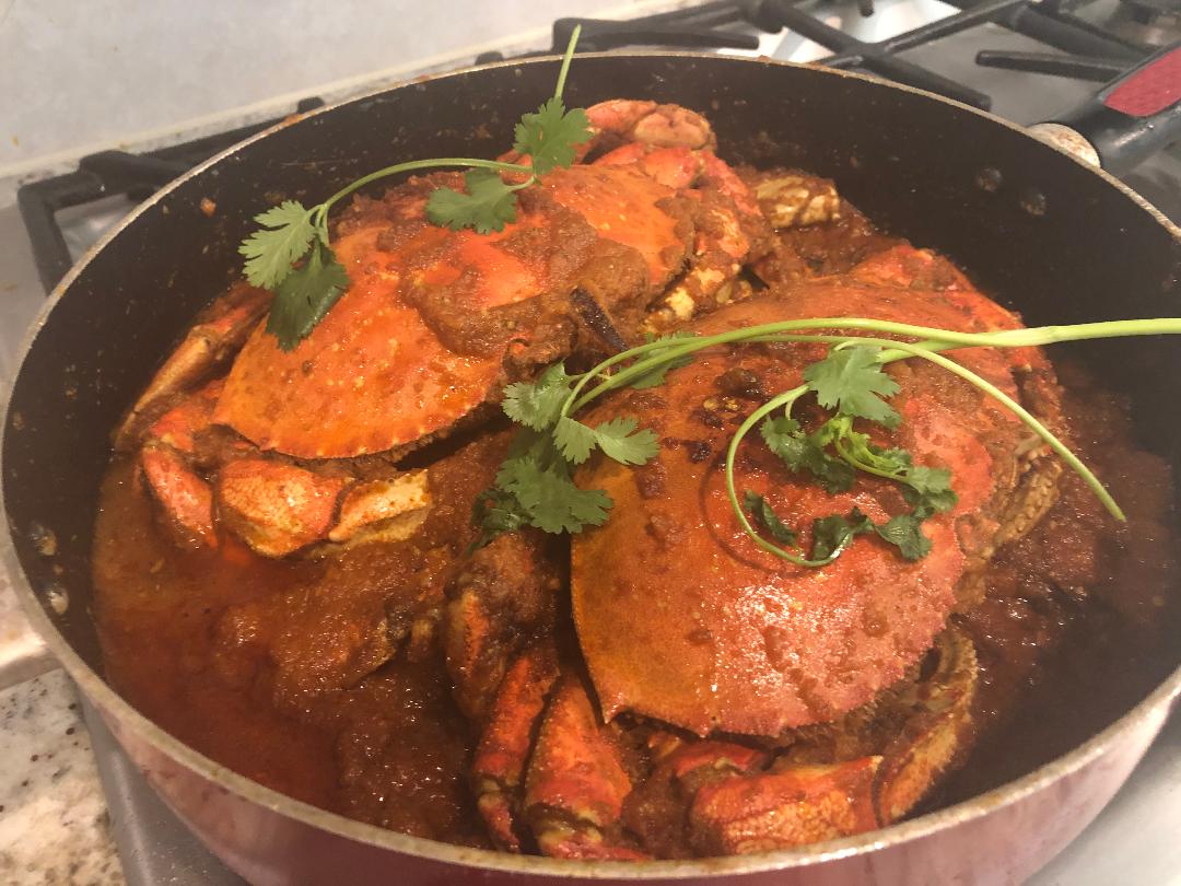 Feeling a trifle sorry for ourselves, my husband and I decided to have an authentic Indian meal for lunch. We ordered crab online—hats off to the online grocery shopping which is exploding—and Costco promptly delivered a couple of humongous crustaceans directly to our door.